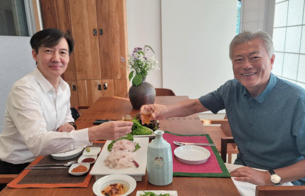 문 전 대통령은 영화 ‘문재인입니다’에서 “지금 당장 소주 한 잔 기울이고 싶은 사람이 누구냐”는 질문을 받고 “조국”이라고 답했다. 문 전 대통령도 그 약속을 지켰다.
