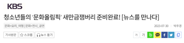 “청소년들의 문화올림픽 새만금 잼버리 준비완료!”(KBS, 7.30), “이상민, 새만금 잼버리 야영장 찾아 현장 안전 점검”(YTN, 7.29), “전 세계 청소년 4만3000명 모이는 새만금 잼버리 준비 이상 무”(세계일보, 2023.7.25.), “보름도 남지 않은 새만금 잼버리 장마 직격탄…전북도 만반의 준비중”(전북일보, 7.19) 등의 기사다.