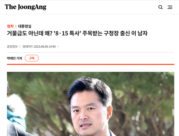사면심사위원회가 목전에 다가온 이달 들어서는 중앙일보도 가세했다. ☞ 거물급도 아닌데 왜? '8·15 특사' 주목받는 구청장 출신 이 남자 중앙일보는 김태우의 재출마를 거론하지는 않았지만 장문의 기사에서 김태우를 사면해야 한다는 명분을 편파적으로 차곡차곡 쌓았다.