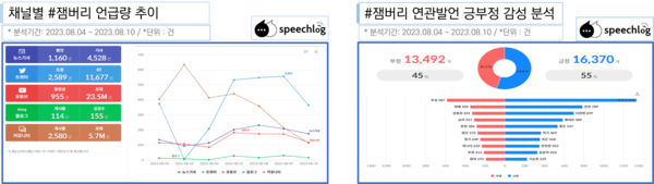 8월 둘째주 SNS와 커뮤니티, 유튜브 등 모든 디지털 플랫폼의 최다 언급 키워드는 ‘잼버리’였다. 전북 새만금이라는 지역의 행사로 조용히 끝날 수 있었던 잼버리 대회가 부실 준비, 부실 관리로 전국민의 최다 언급 키워드, 전세계의 망신 키워드가 된 것이다.