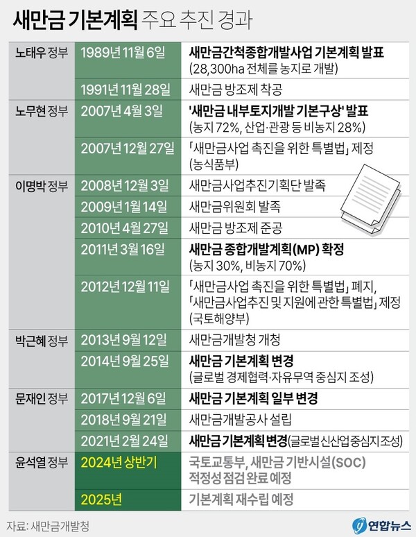 이로써 1971년 시작된 새만금 개발 사업은 다시 한번 격랑을 맞았다. 새만금은 당시 식량 위기를 해소하기 위해 바다를 메워 농지를 만들기 위해 시작됐다. 1987년 노태우 대통령이 국책사업으로 추진되기 시작해, 1989년 사업 기본계획이 확정됐다. 1991년 사업에 착공했지만 김대중, 노무현, 이명박 정부를 거치며 계획이 여러 차례 수정됐다.