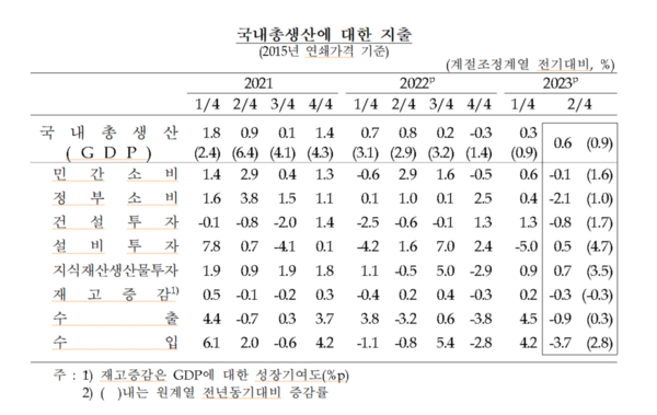 그러나 2분기 성장률을 부문별로 보면 설비투자(0.5%)를 제외한 모든 부문이 하락했다.