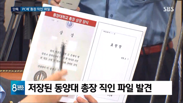 이후 취재진은 여러 취재 내용 등을 참고해 정 교수 연구실 컴퓨터에서 총장 직인 파일이 발견됐다고 보도했습니다.