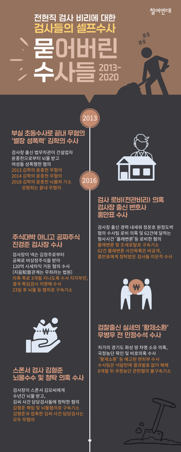 지난해 검사와 판사가 피의자로 입건된 사건은 모두 1만 건이 넘었지만(검사 5809건, 판사 4812건), 정식 재판에 회부된 경우는 1건도 없었다. 전체 형사사건 기소율은 40%를 넘는다.