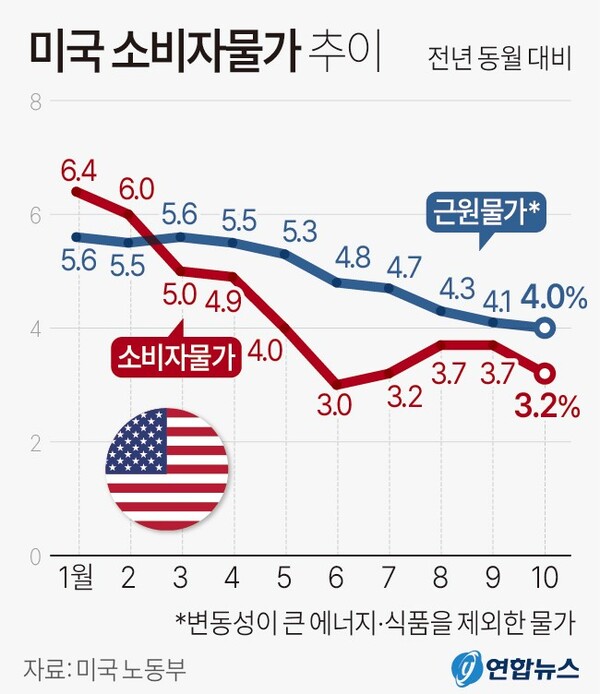 미국의 10월 소비자물가 상승률은 시장 예상치보다 낮은 3.2%에 그쳤다. 이런 추세라면 올해와 내년의 한-미간 물가 상승률이 역전될 가능성이 높다. 영국도 지난달 소비자물가가 전년 동기 대비 4.6% 상승했다. 이는 전달 6.7%에서 큰 폭 하락한 수치이고, 지난 2021년 10월 이후 가장 낮은 상승률이다.