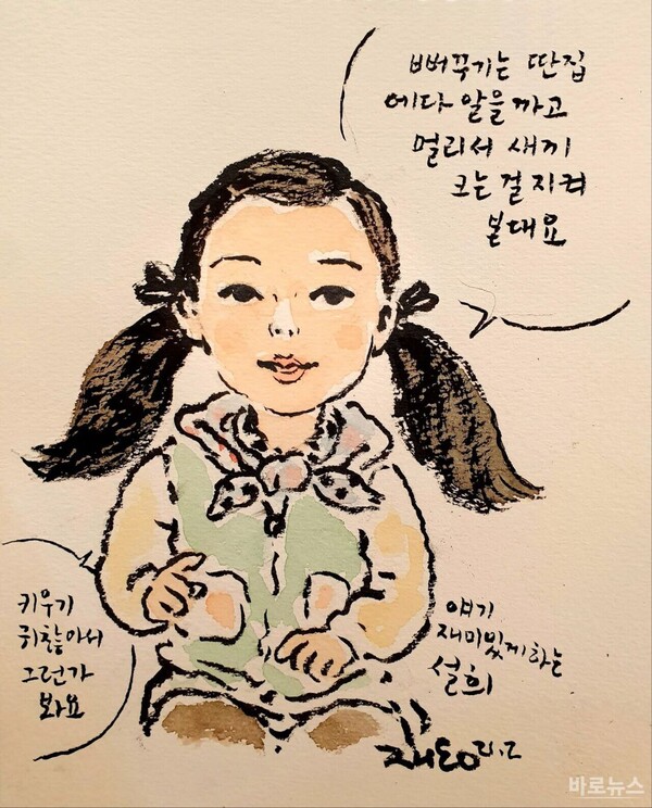 “행사, 너무 좋았어. 너무너무 좋았어. 거기 축하해 주러 오신 시민분들 표정을 보니까 아주 좋았어. 그분들의 마음이, 그게 진짜 우리의 힘이잖아. 한겨레신문도 민들레처럼 시민들의 지지로 창간했는데 요즘은…. 그걸 이제 민들레가 해주니 얼마나 고마운지 모르겠어. 그리고 말야, 내가 민들레 1주년 기념 그림 그린 게 있어. 민들레 홀씨가 확 퍼지는 걸 그렸거든.”