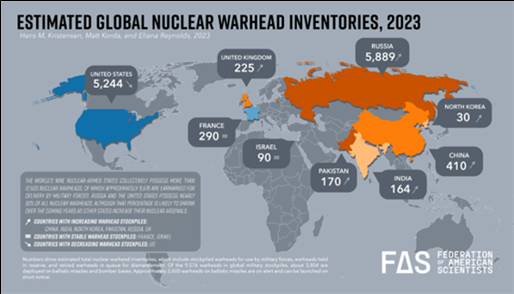문제는 당장 운용 가능한 핵무기 보유량이 다시 늘고 있다는 것이다. 핵보유국들은 핵군축보다는 확충에 다시 눈을 돌리고 있다. 이는 핵비확산조약의 목표와 정신에 어긋나는 것이다. 특히 미국, 중국, 러시아는 자국 핵전력을 눈에 띄게 현대화, 최신화하고 있다. 중국이 현재 속도로 핵무기를 계속 확대한다면 2030년대 중반까지 실전 배치된 핵탄두에서 미국과 동등한 수준에 도달할 것으로 예상된다. 설상가상으로 러시아가 여전히 세계 최대 핵보유국이 될 가능성이 높다.