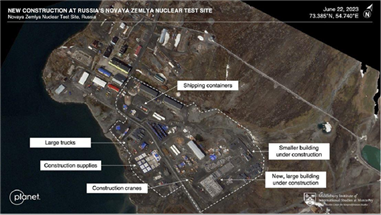 지난해 러시아 군대가 우크라이나를 침공할 무렵에도 북극해 군도의 노바야 젬랴에서는 러시아 핵실험장을 확장하는 모습이 목격되었다. 인구가 희박한 중국 서부 두 사막 사이에 있는 말라버린 염호 롭 노어에 있는 중국 핵실험장에서도 활동이 증가한 것이 감지되었다. 지하갱도가 굴착되고, 도로가 신설되었다. 건설 흙더미가 꾸준히 늘어나고 있어 다섯째 갱도가 확장되고 있음을 알 수 있다. 2021년과 2022년에 저장공간이 신설됐는데, 폭약공장으로 활용될 것으로 추정된다.