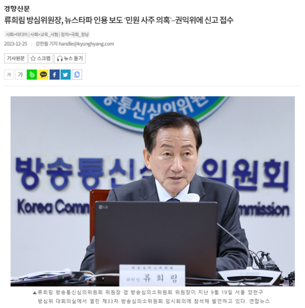 - 류희림 방심위원장, 적반하장의 끝은 어디인가