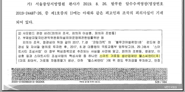 보다시피 이 영장의 서술은 ‘블루펀드 투자 업체는 스마트가로등 업체’라는 명백한 허위 명제로부터 시작된, 완전한 허구의 서술이다. 그 명제 없이는 아예 논리 구성은 물론 논리의 시작조차 되지 않는다.