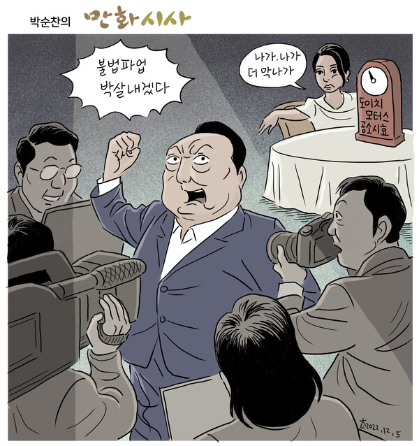 윤 대통령은 최근 들어 ‘범죄’라는 말을 자주 입에 올린다. 노동기본권에 보장된 파업을 범죄로 보고 있음을 노골적으로 드러내고 있다.