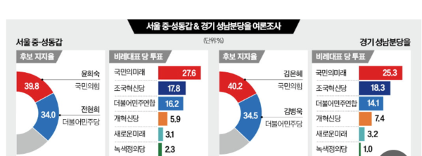 용산, 중성동갑, 성남분당을, 하남갑 뚜렷한 차이