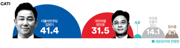 동작갑 김병기 41.4%, 장진영 31.5%, 전병헌 4.8%