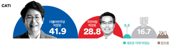 대전 대덕 박정현 41.9%, 박경호 28.8%, 박영순 5.2%