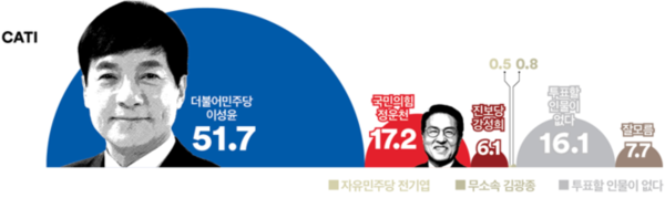 전주을 이성윤 51.7%, 정운천 17.2%, 강성희 6.1%