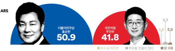 민주 홍순헌 50.9%, 국민의힘 주진우 41.8%