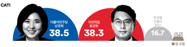 인천 동·미추홀 남영희 38.5%, 윤상현 38.3%