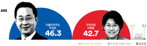 중‧성동을 박성준 46.3%, 이혜훈 42.7%, 김영기 2.4%