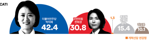 의정부갑 박지혜 42.4%, 전희경 30.8%, 천강정 1.3%