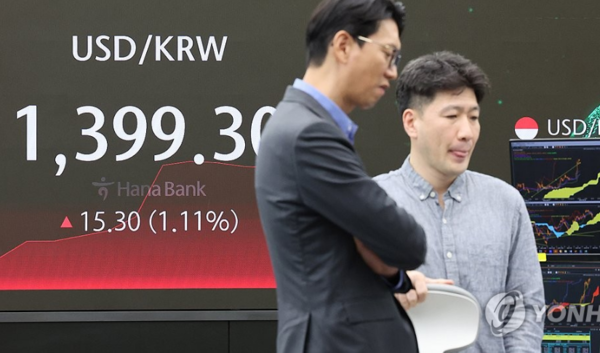 16일 달러당 1394.5원 마감…2022년 11월 이후 처음