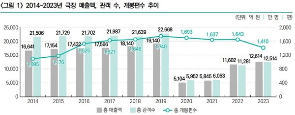 영화진흥위원회(이하 영진위)의 『2023년 한국 영화산업 결산 보고서』를 살펴보면 코로나-19의 영향으로 2020년부터 극장 매출, 총관객수가 73% 하락했음을 확인할 수 있다. 물론 2022년부터는 코로나-19 국면이 해소되기 시작하여 극장 매출과 총관객수가 소폭 반등하고 있기는 하다. 그럼에도 영화산업이 영화 입장료 인상과 OTT 시장 확장 등의 영향으로 2020년 이전 수준으로 회복될 기미는 여전히 보이지 않는 상황이다. 이처럼 팬데믹의 후유증과 관객의 관람 패턴 다변화 등이 포개진 상황에서 한국 영화계의 미래를 담보할 수 있는 정책이 절실하지 않을 수 없다.