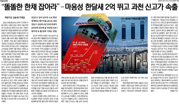 한국경제, 매일경제, 서울경제 등 경제지들은 서울지역 아파트값 상승 지표가 나온 데다 특정 지역의 매매가격이 크게 뛰었다며 호들갑스럽게 기사를 쏟아냈다. 서울시내 몇 군데 아파트와 최근 몇 주간의 상승 지표만으로 전체 부동산 시장에 불안감을 고조시키고 있는 것이다.