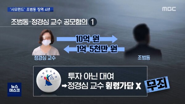이것은 정 교수가 조범동의 요청에 따라 코링크PE가 설립되기 전인 2015년 12월 말에 5억 원, 코링크PE가 설립되고 1년 후인 2027년 2월에 추가로 5억 원을 보낸 것으로, 두 번 모두 정 교수만의 자금은 아니었고 정 교수와 동생 정 씨의 돈을 합한 것이었다.
