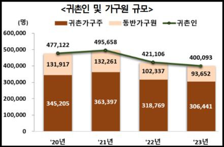 정부 관계자는 “2차 베이비부머(‘68~‘74년생) 은퇴, 농촌지향 수요 지속 등으로 귀농·귀촌 흐름은 이어질 것으로 본다”라고 희망 섞인 전망을 했는데 과연 그렇게 될까? 정부는 1년 전 2022년 발표 때는 “베이비붐 세대(‘55~‘63년생) 등 은퇴 연령층 증가, 도시민의 농촌에 대한 관심 증가 등 영향으로 귀농·귀촌 흐름은 이어질 전망”이라고 발표했다. ‘베이비붐 세대(‘55~‘63년생)’의 은퇴에 기대를 걸었다가 1년 만에 ‘2차 베이비부머(‘68~‘74년생)’ 은퇴로 기대의 대상을 바꿔버렸다. 1차 베이비붐 세대의 막내인 1963년생이 이미 60살이 넘었어도 이도향촌 하향세가 이어지니 계속 1차 베이비붐 세대의 탈도시가 늘어날 것이라 기대를 걸기 어려웠을 것이다. 2차 베이비붐 세대의 막내인 1974년생이 60세가 되려면 아직 10년이 남았으니 귀농·귀촌을 늘려야 하는 담당 부서 입장에서는 꽤 시간을 벌어놓은 셈이다.