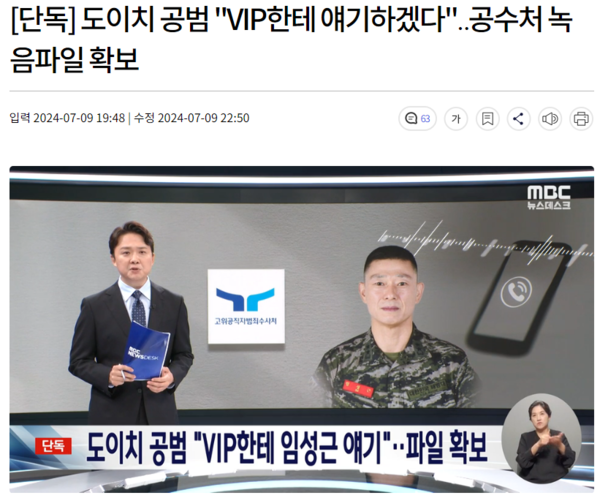 MBC도 “[단독] 도이치 공범 ‘VIP한테 얘기하겠다’..공수처 녹음파일 확보” “[단독] ‘김 여사 개인적으로 알아’..주가조작 선수와 관계는?” 제목의 뉴스를 방송했다. 같은 날 밤 한겨레는 “[단독] 도이치 공범 ‘임성근 구명’ 녹취에 군·경찰 인사 관여 정황” "'[단독] VIP에게 임성근 얘기하겠다, 김건희 도이치 공범 녹취 공개" 제목의 기사를 냈다. 3개 매체가 비슷한 내용의 뉴스에 모두 ‘단독’을 앞에 달아 보도한 셈이다.