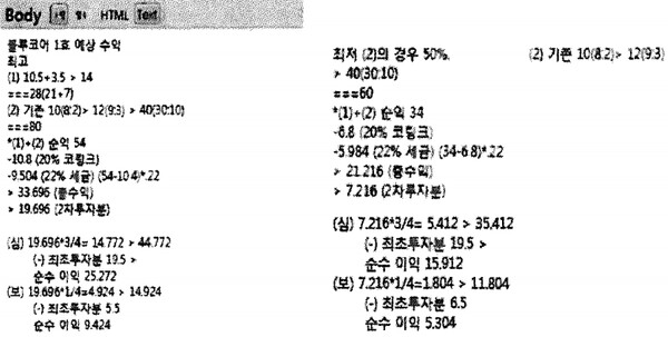 첫째, 이 메모의 제목이 “블루코어1호 예상 수익”이라는 점이다. “블루코어1호 및 기존 10억 예상 수익”이 아니다.