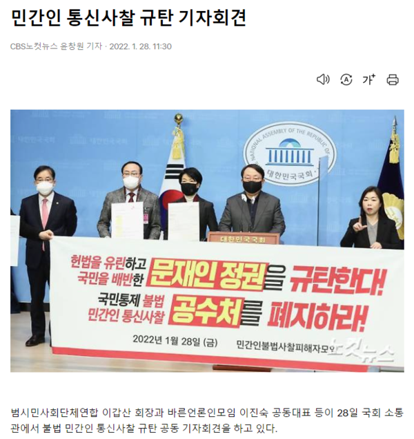 이밖에 동아일보 사설 “기자들 통신자료 마구 뒤진 공수처, 언론사찰 아니면 뭔가”(2021.12.17.) 등 4건, 한국일보 “공수처, 윤석열과 국힘 의원 통신조회...야당 사찰 아닌가”(12.30) 등 3건, 중앙일보 “이젠 언론사찰 의혹까지 받는 공수처”(2021.12.15.) 등 2건 등이다. 수사기관의 언론인·정치인 통신조회를 이렇게 맹렬히 비난하던 주류 언론들이 지금은 다 어디로 갔나?