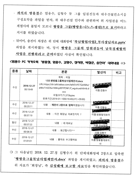 제목부터 '쌍방울그룹의 대북사업의 목적' 명확히