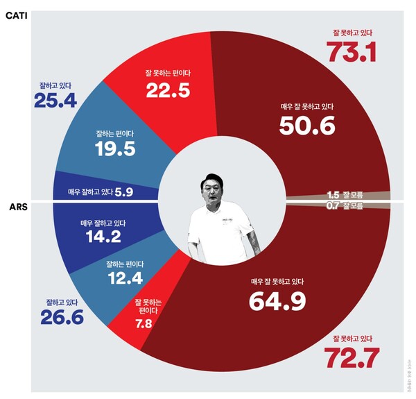 국정운영 부정평가 4.8%p 올라 72.7%
