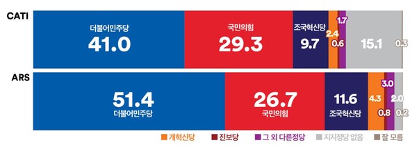 정당지지도 ARS조사에서도 민주당 51.4% 국힘당 26.7%, 더블 스코어