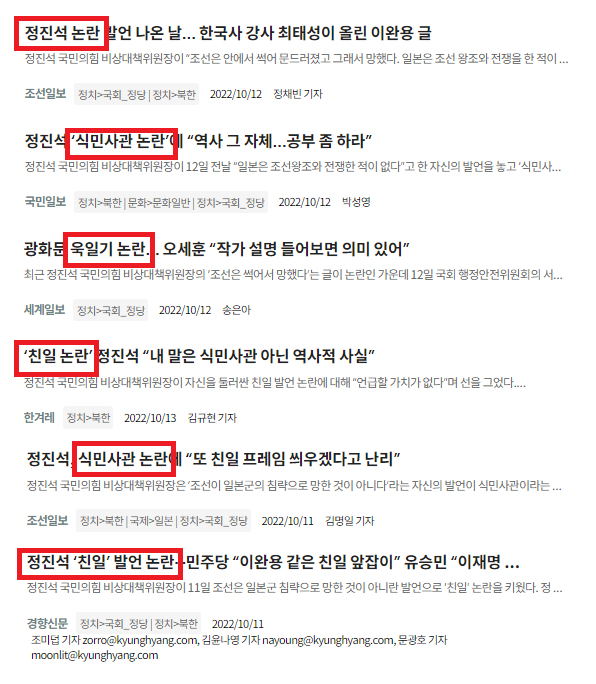 주류 언론들의 친일 언동 축소·왜곡 보도는 이번만이 아니다. 정치인의 친일 옹호·미화 발언이 나오고 상대 정당이나 시민단체·독립운동단체들이 반발하면 습관적으로 ‘논란’이란 제목을 붙였다. 정치권에 공방이 오가면 이를 그저 ‘정쟁’으로 몰고 갔다. 혹독한 비판으로 심판해야 할 친일 망언· 망발을 '논란거리' 프레임으로 전환함으로써 친일의 심각성과 폐해를 희석하고 있는 것이다.