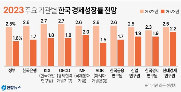 주요 기관과 비교해보면 한국개발연구원(KDI·1.8%), 경제협력개발기구(OECD·1.8%), 한국은행(1.7%) 등보다도 낮다. 아시아개발은행(ADB·1.5%)보다는 높았다.