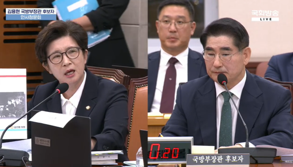 2일 밤 늦게까지 진행된 국회 국방위원회의 김용현 국방부 장관 후보자에 대한 인사청문회에서 야당 의원들은 '계엄령 준비 의혹'을 비롯해 김 후보자가 주도한 용산 대통령실 이전, 경호처장 시절 '입틀막' 과잉 경호, 채 상병 사망 사건 수사 외압 연루 문제 등을 집중적으로 제기했다. 반면 여당 의원들은 시종 김 후보자 '방탄'에 주력하는 가운데 강선영 의원이 질의 도중 난데없이 이렇게 주장했다.