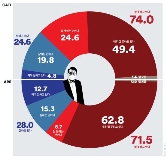 전화면접방식 대통령 지지율, 여론조사꽃 조사 이래 최저치 24.6%