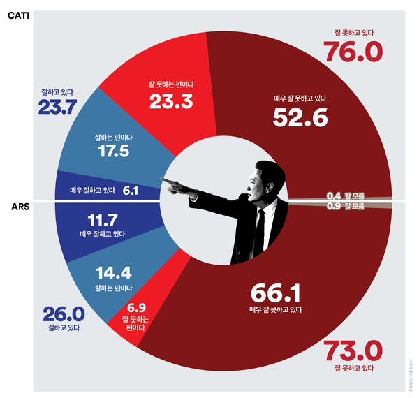 대통령 국정운영 ‘긍·부정’ 격차 전화면접 52.3%p ARS 47.0%p