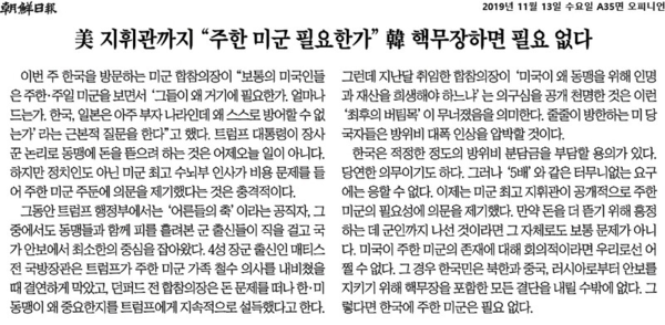 한국 핵 무장 주장해온 조선, 또 자기부정?